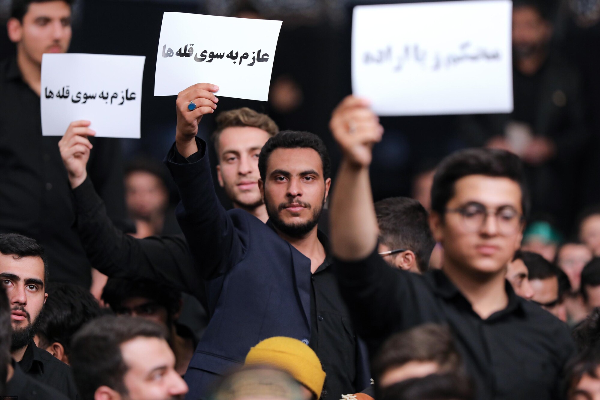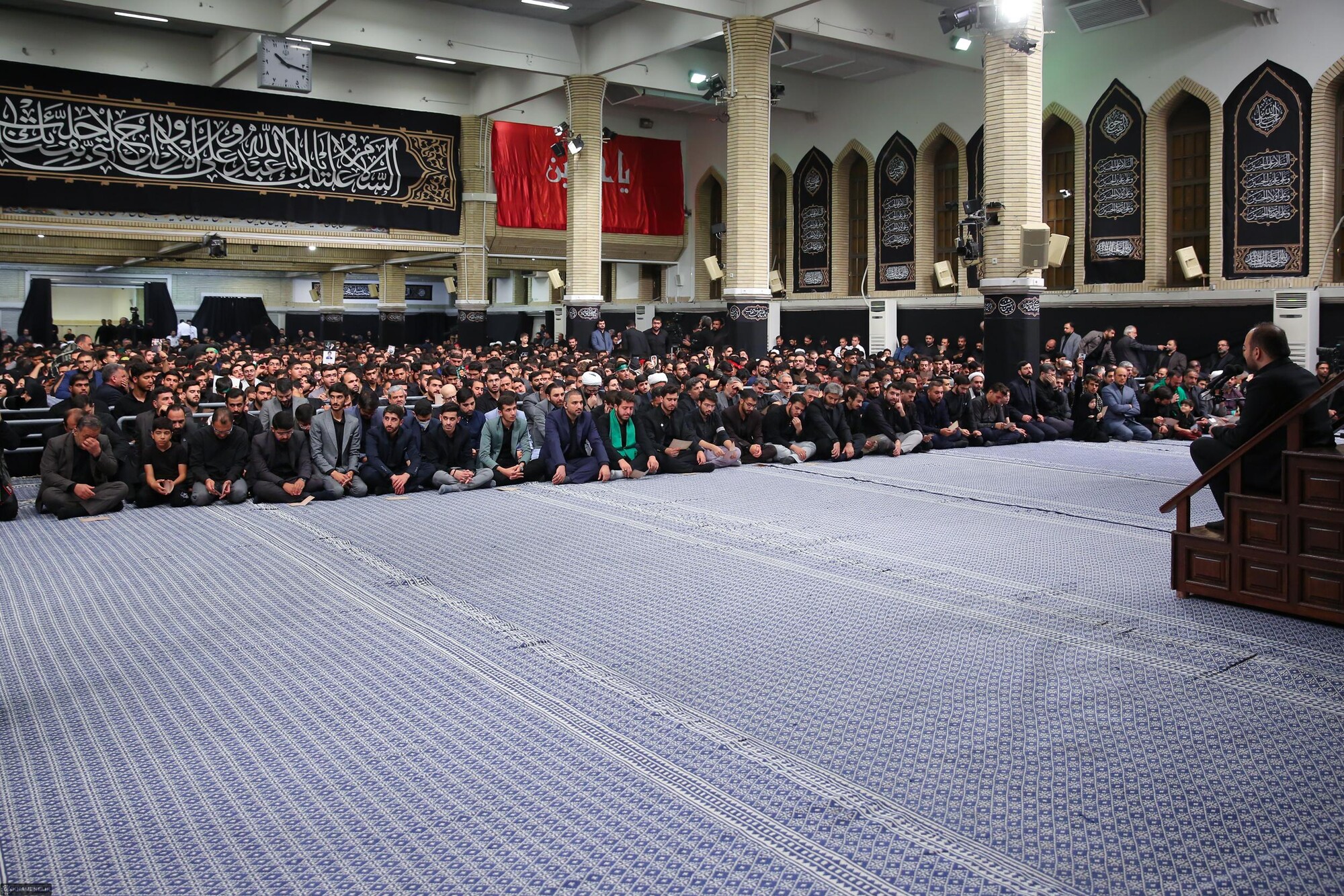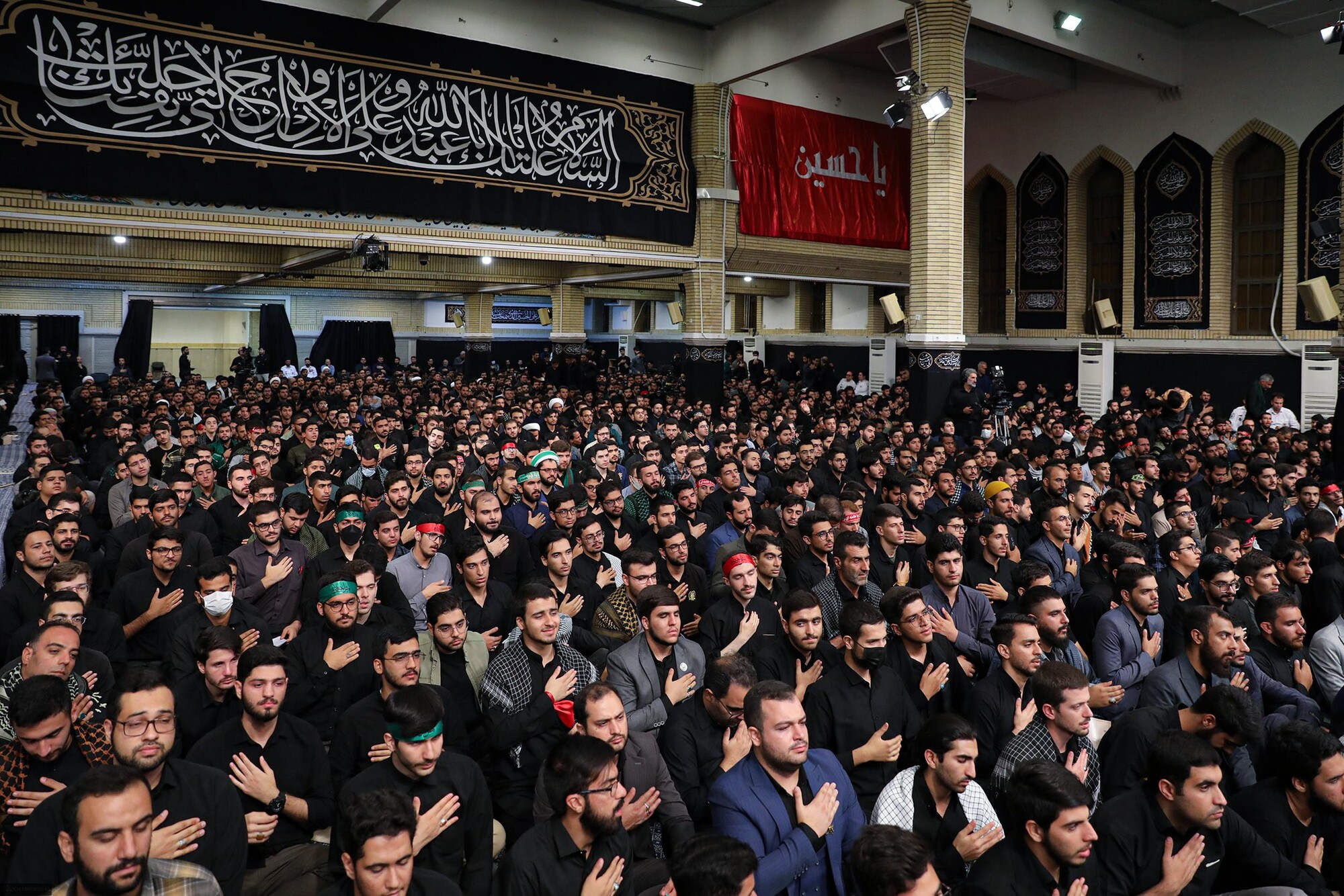 Coincidiendo con Arbaín, aniversario del cuadragésimo día tras el martirio del imam Abu Abdulá al-Husain (con él la paz) y sus leales compañeros, congregaciones estudiantiles de todo Irán han participado en una ceremonia de duelo en presencia del Líder de la Revolución Islámica