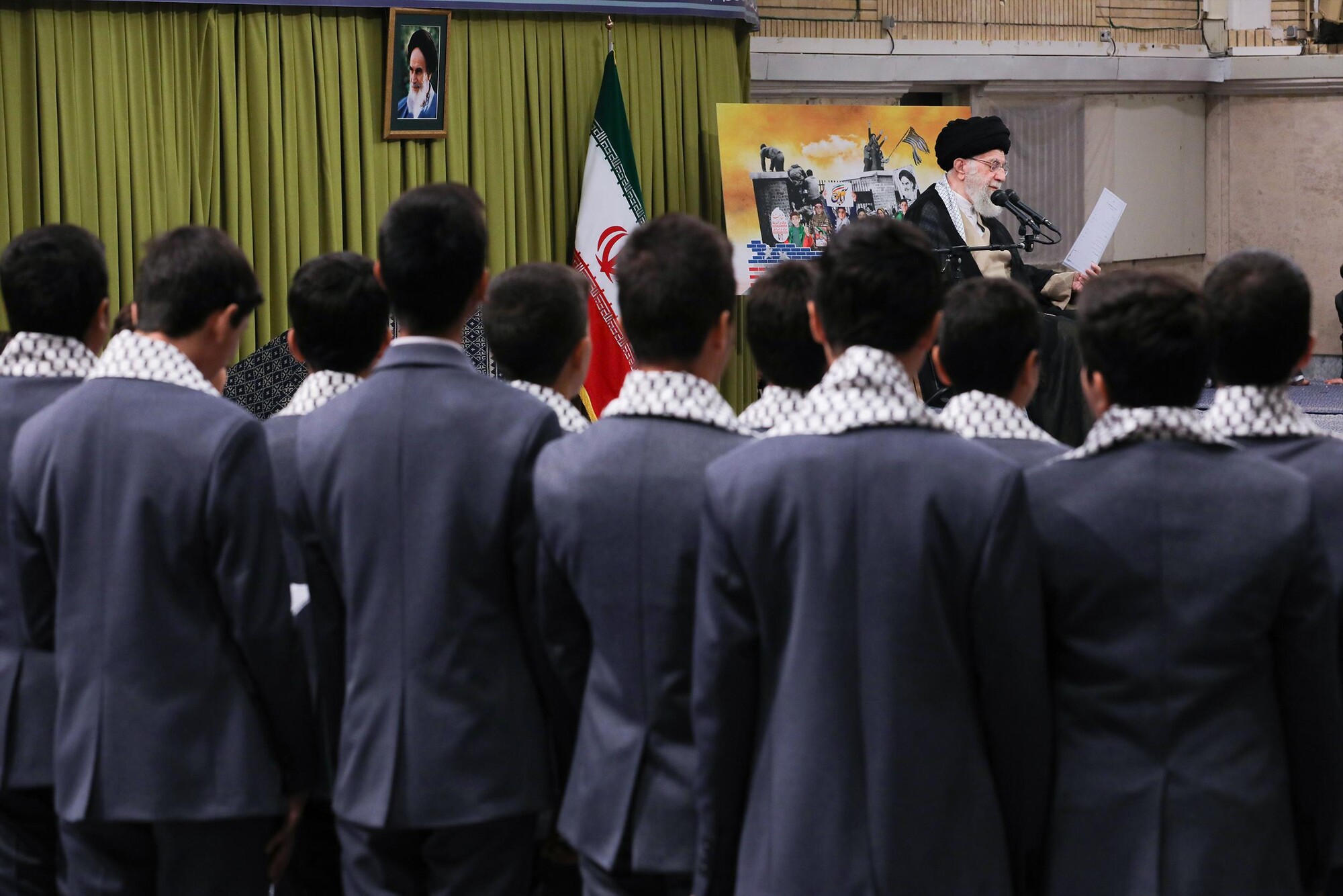 Encunetro de un grupo de estudiantes con el ayatolá Jameneí en vísperas del Día Nacional de la Lucha contra la Arrogancia Mundial